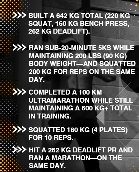 Expertly Designed, Periodized Programming – No guesswork, no cookie-cutter plans. This program is crafted to help you build serious strength like a powerlifter while dominating your running performance. (£200/month value)